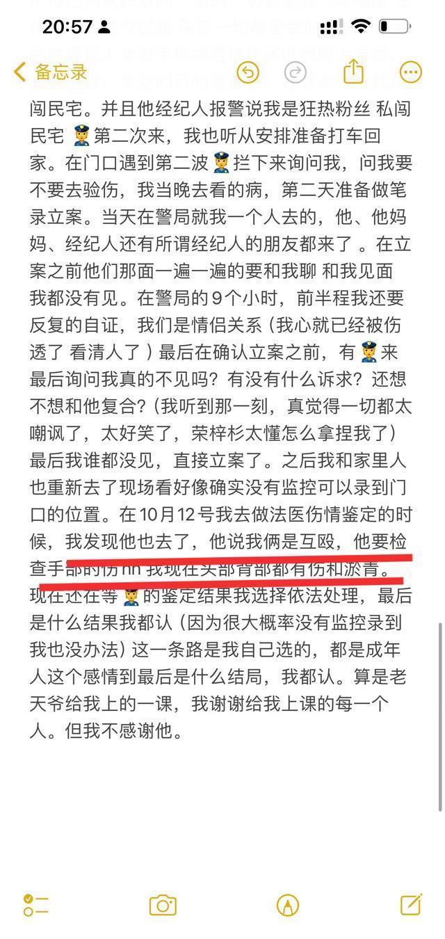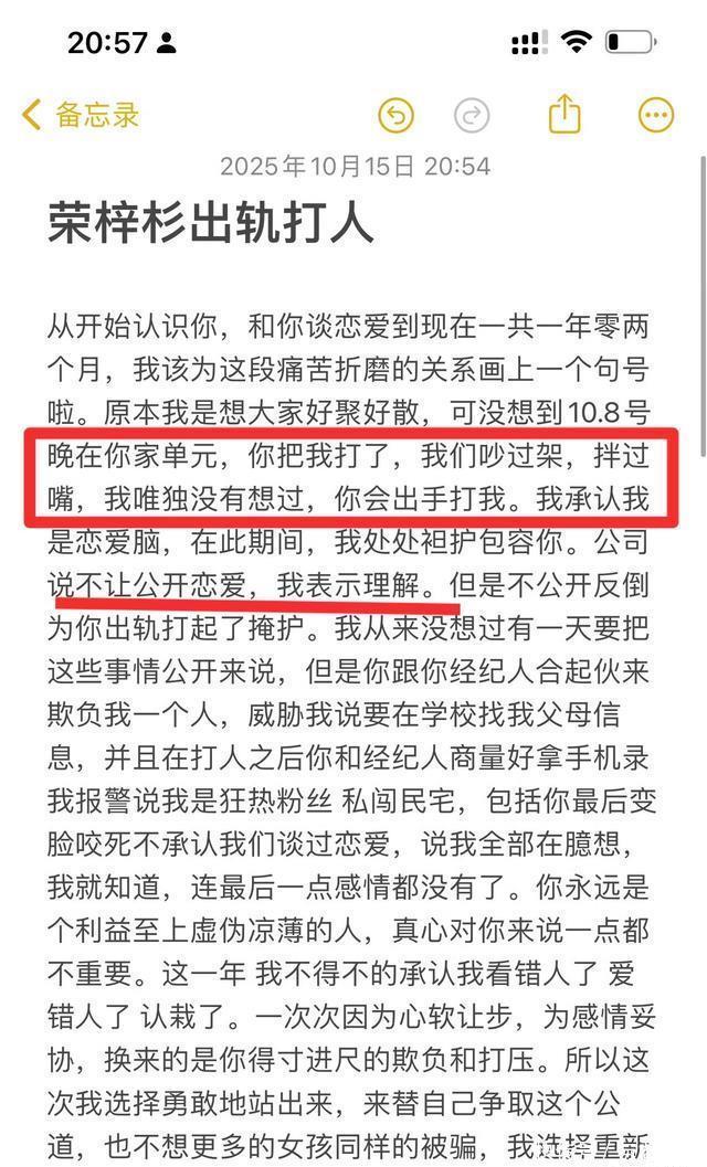 10月15日深夜,北京冬奥会女演员李禹熹。 在社交媒体上,发布上千字长文爆料:19岁男星荣梓杉,在和自己交往期间“不仅脚踏4条船,而且还打人。”
